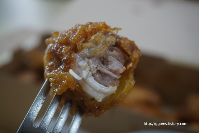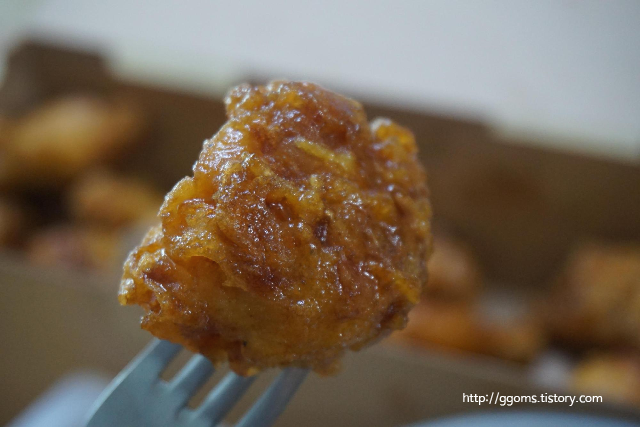 한입 베어 먹으니 식감은 약간 바삭거리면서 찹쌀의 쫀득함이 느껴져요.