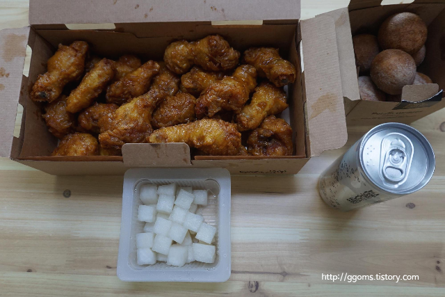 치킨을 좋아하긴 하지만 퍽퍽살 부분을 좋아하지는 않아 다리와 날개 구성의 교촌치킨 허니콤보 치킨을 자주 사 먹는 편입니다. 최근에도 허니콤보로 주문했고요. 여기에 치즈볼 맛이 궁금해 함께 주문했습니다.