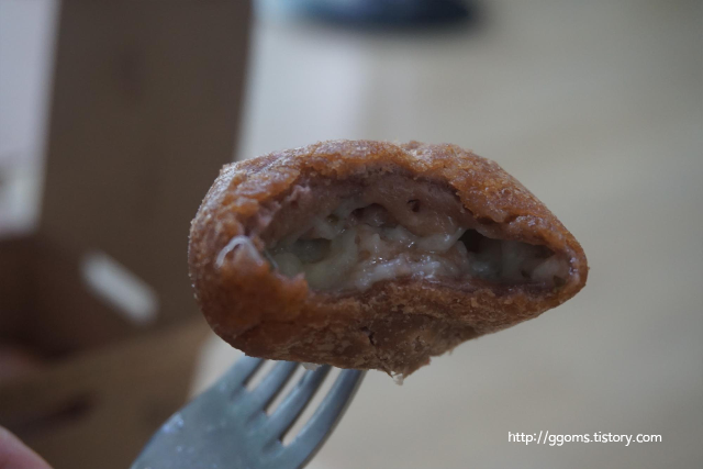 그냥 찹쌀 도너츠의 맛이 많이 느껴져요. 간은 짭조름한 편입니다.
