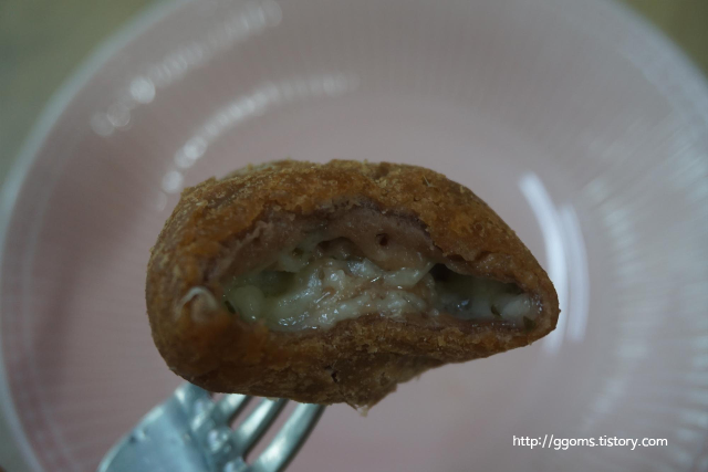 속에 든 고르곤졸라치즈, 치즈는 생각보다 많이 들어 있지는 않은 듯,
