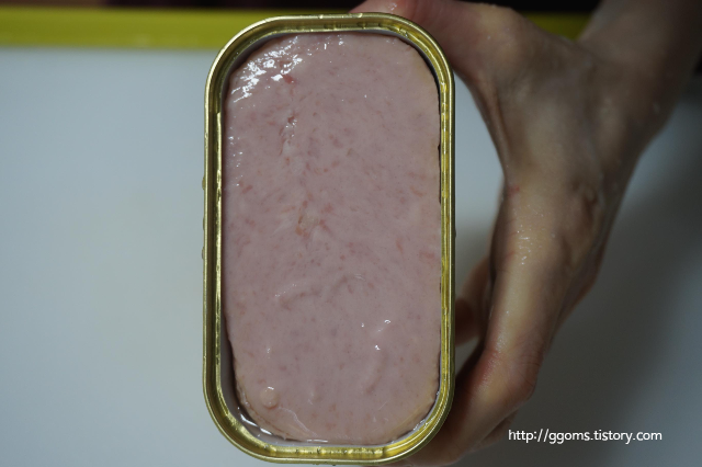속의 스팸햄을 이대로 빼려고 하면 잘 안 빠져요.