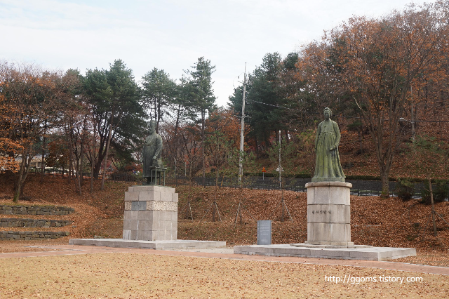 일단 들어서서 오른쪽으로 쳐다보니 동상 두 개가 눈에 띄더라고요.