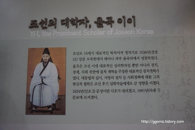 율곡 선생 관련 자료들이 전시되어 있었습니다.