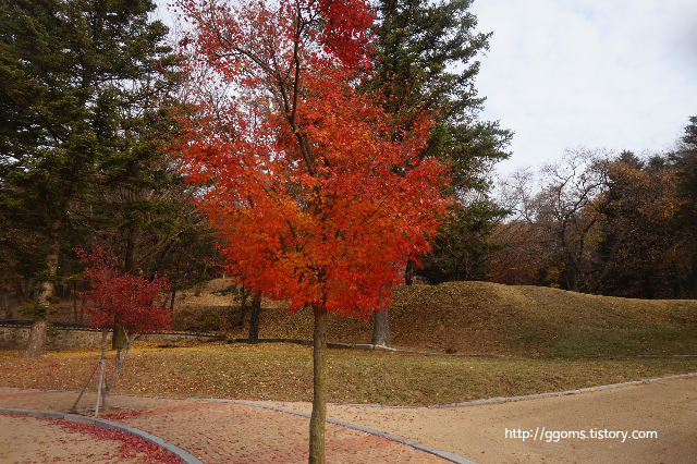 입구 옆에 붉은 단풍나무가 눈에 띄어 한 컷~
