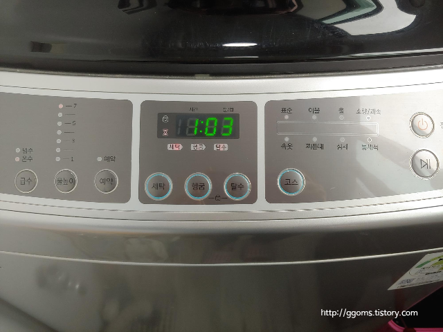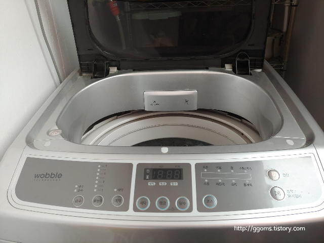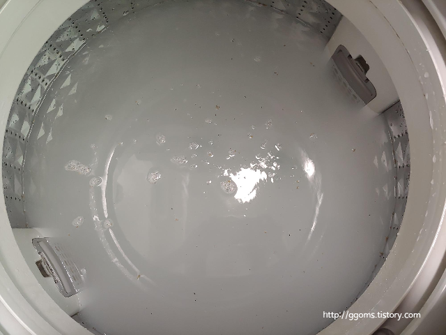 일단 저희 집 세탁기는 통돌이 세탁기에요. 사용법대로 온수를 최고수위로 받았고요.