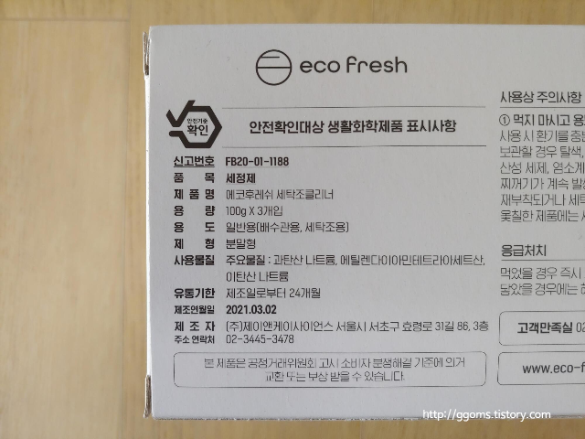 에코후레쉬 세탁조 크리너 사용방법, 사용법입니다. 에코후레쉬 세탁조 클리너 사용 시 일반 통돌이의 경우 온수로 채운 세탁조 안에 내용물을 붓고 잠깐 작동시켜 분말을 녹이고요. 90분간 그대로 둔 뒤 표준코스로 1회 작동시킵니다. 그리고 드럼 세탁기는 세탁조에 분말세제를 넣고 뚜껑을 닫은 후 표준코스로 90분간 가동하면 된다고 하네요.