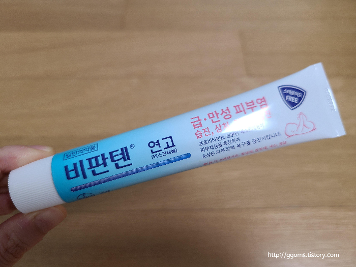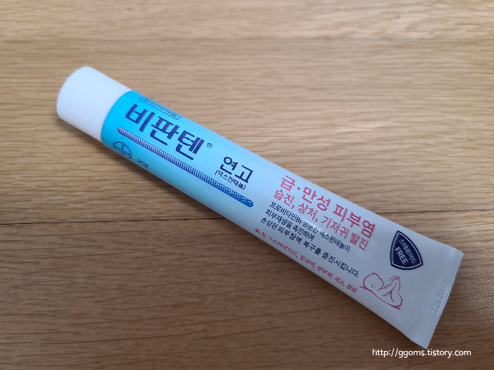 그렇다고 계속 스테로이드약에 스테로이드 연고까지 사용할 수도 없고요. 그래서 심한 곳은 어쩔 수 없지만 피부염이 시작되는 단계는 스테로이드 성분이 들어 있지 않은 연고를 발라보면 어떨까 싶어 비판텐 연고를 한 번 구입해 보았습니다.