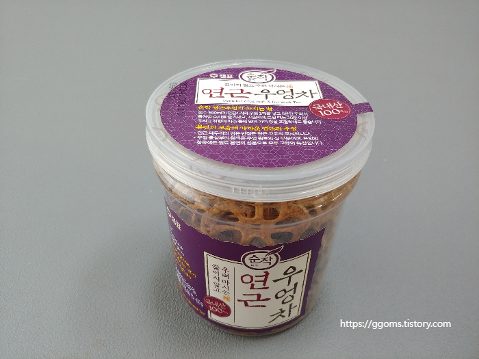 샘표 순작 연근우엉차입니다. 원물인데 끓이지 않고 우려 마시는 원물차예요.