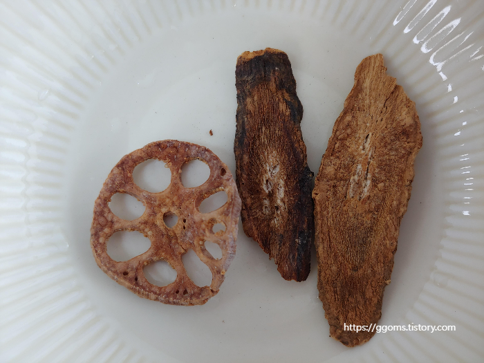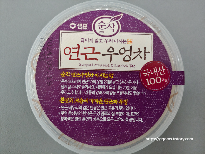 마시는 법은 온수 500ml에 연근 1개와 우엉 2개를 넣고 5분간 우리면 된다고 합니다.