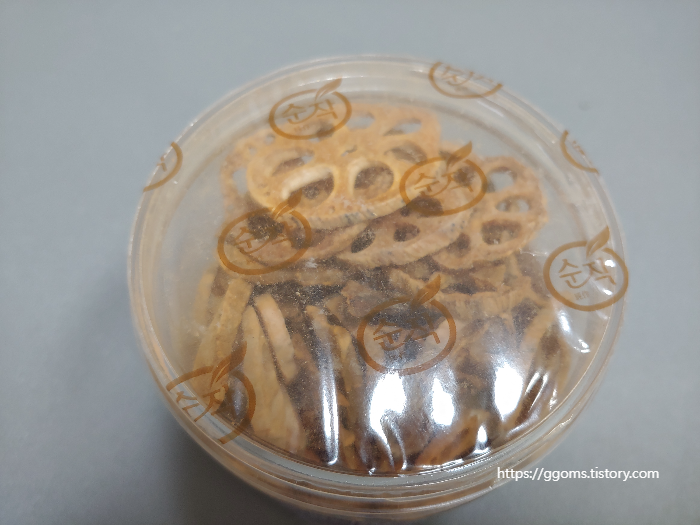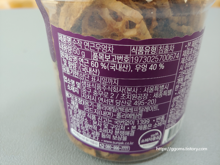 원재료명 및 함량은 연근 60%, 우엉 40%, 연근 양이 더 많네요.