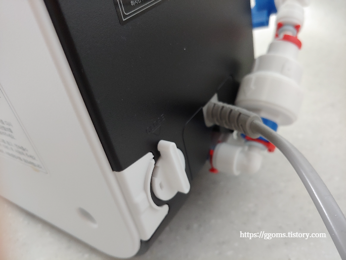 저장 물 탱크가 없는 직수 정수기로 전에 사용했던 건 무전원이었는데 이건 전기가 필요한 정수기예요. 소비전력은 14W입니다.