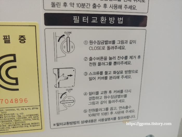이렇게 제품 옆면에 필터 교환 방법이 적혀 있어요. 그대로 따라 하면 되지요.