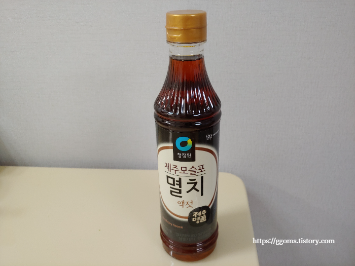 어쨌든 저희 집에서 사용하고 있는 청정원 제주 모슬포 멸치액젓인데요. 김치는 이 액젓으로 담그지는 않고요. 국, 찌개, 무침 등 반찬에 많이 사용하는데, 음식 맛이 잘 안 날 때 조미료 대신으로 넣으면 감칠맛도 나고 좋은 것 같더라고요. 무엇보다 멸치와 천일염 외 다른 합성 첨가물이 없어 좋은 것 같아요.