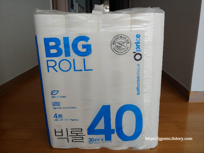 킴스클럽 오프라이스 화장지에요. 쿠팡에서 15,900원에 구입했어요. 길이 30m에 30롤이 아닌 40롤 빅롤입니다.