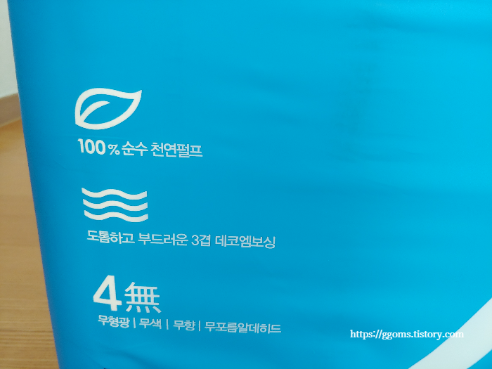 솔직히 비싼 가격의 화장지를 사면 질이 훨씬 더 좋겠지요. 하지만 화장지를 아끼지 않고 막 쓰는 편이라 비싼 고급 화장지를 사기란 부담스럽습니다. 이 화장지는 롤수가 일반 화장지 한 팩보다 많은데다 세일가로 구입한 가격대 기준으로 비교하면 품질도 괜찮은 듯, 가성비가 좋은 화장지인 것 같아요.