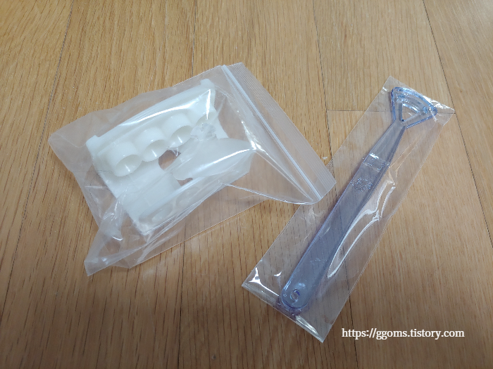 하나 구입하면 사은품이 치간칫솔 거치대가 있고요. 2개 구입하니 치간칫솔 거치대에 혀클리너까지 사은품으로 있네요.