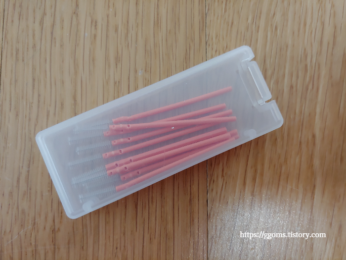 그리고 제품에 휴대용 치간칫솔 10P가 휴대용 케이스에 넣어져 동봉되어 있어요.