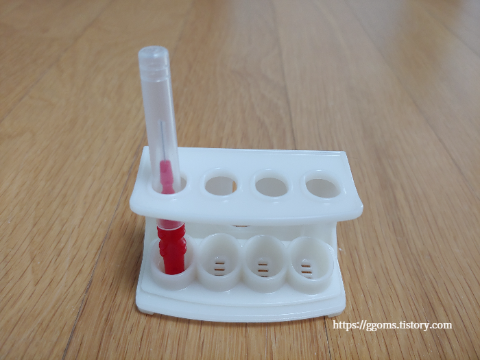 어쨌든 치간칫솔 꽂이에 치간칫솔을 세워서 보관하니 좋네요. 쓰고 나서 말릴 때는 뚜껑을 열어 건조하면 되고요.