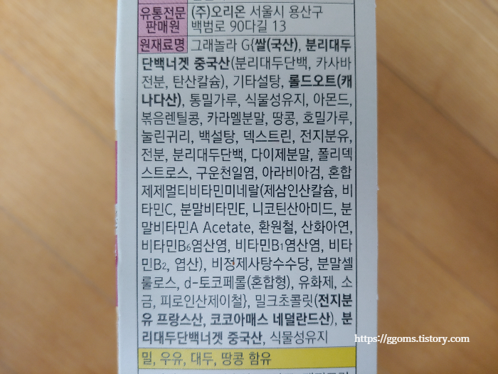 가끔 식사 대용으로 우유에 시리얼 넣어 먹곤 하는데요. 이번에는 마트에서 오!그래놀라 단백질이라는 제품을 구입해 보았습니다.