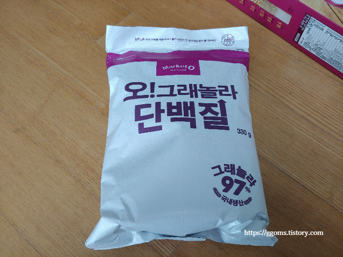 마켓오 오!그래놀라 단백질 시리얼이에요. 중량은 330g입니다.