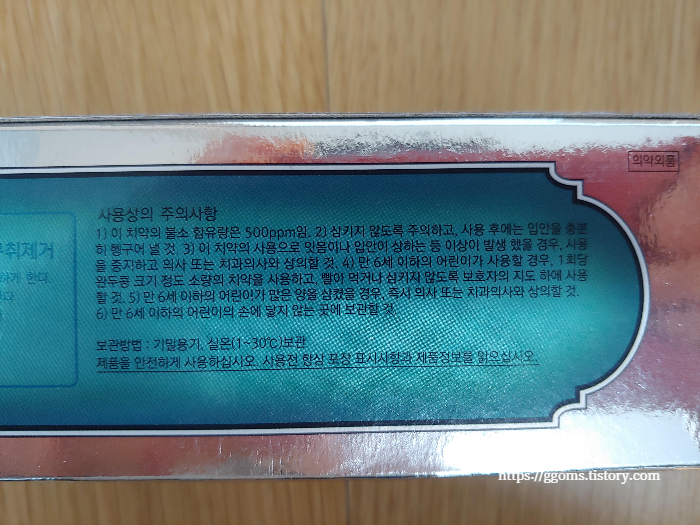 불소 함유량은 500ppm이에요. 적정량의 불소는 충치예방에 도움이 된다고 하지만 불소라는 게 부작용도 있기에 많이 함유되어 있는 건 꺼려지기도 하는데요. 500ppm 정도면 저불소 치약인 듯합니다.