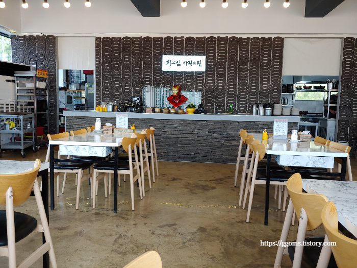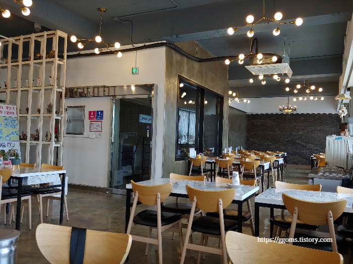 식당은 2층에 있어요. 식당 내부는 꽤 넓고요. 깔끔합니다.
