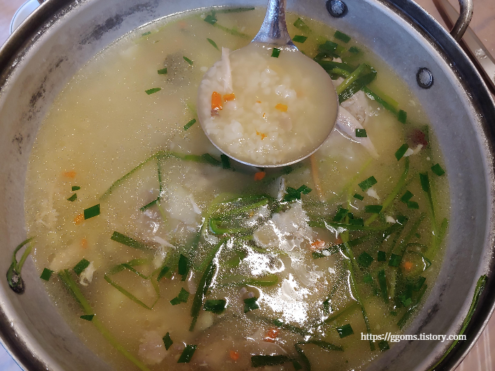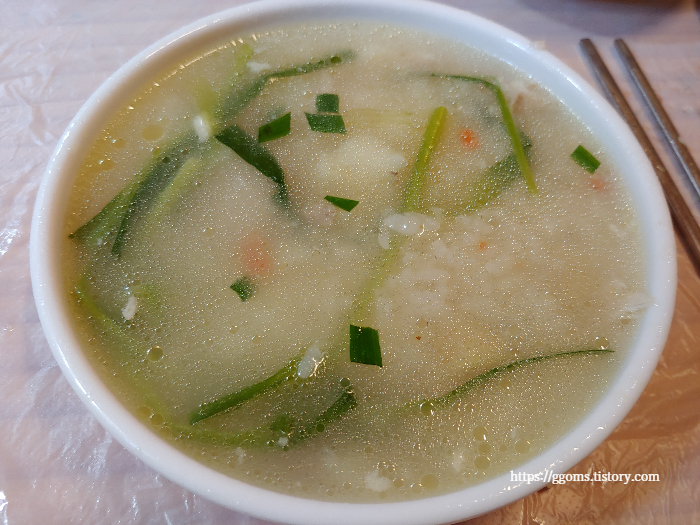 국물이 많아 죽이라기보다 국물에 밥 말은 듯하네요.