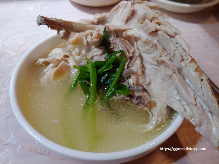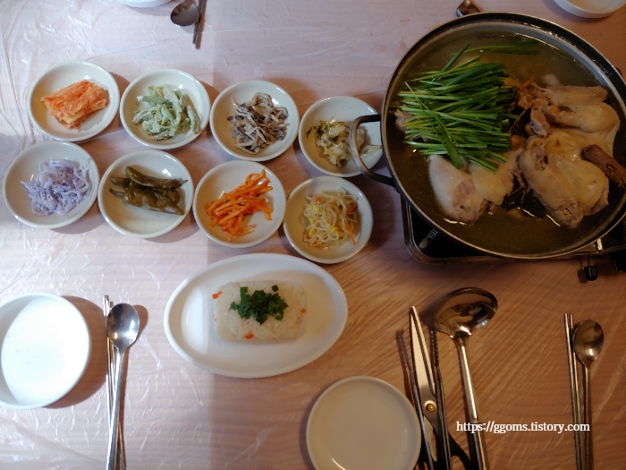 저희는 토종 닭백숙을 예약할 때 미리 주문했었는데요. 자리에 앉자마자 얼마 지나지 않아 바로 음식이 나왔습니다.