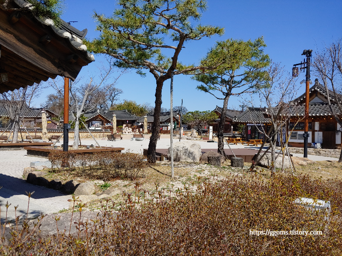 교촌한옥마을로 한옥이 줄지어 있습니다. 저희는 갓길에 주차를 하고 식당을 찾아갔어요.