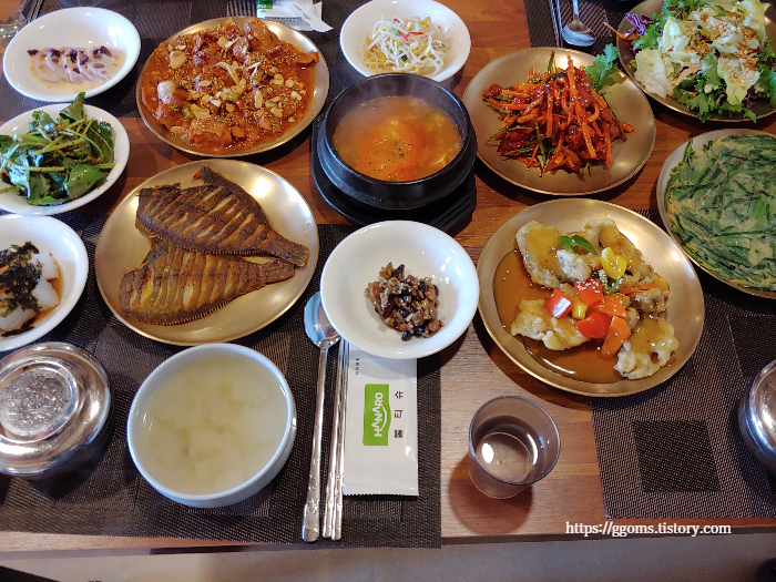 그렇게 경주 알천반상에서 식사를 마쳤는데요. 음식은 전체적으로 간이 심심함 편이고요. 깔끔하니 괜찮았어요. 그런대로 만족하면서 먹었습니다.