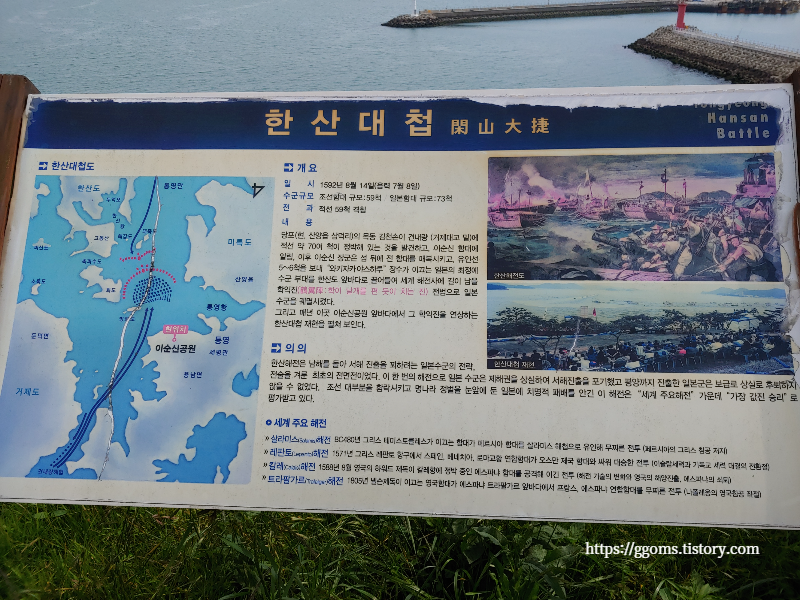 조선 수군과 일본 수군이 해상 주도권을 다툰 해전에서 이순신 장군이 이끄는 조선 수군이 일본 수군을 대파하였는데, 이순신 공원은 이러한 이충무공의 애국애족정신을 기리고, 거룩한 호국의 얼과 높은 뜻을 선양, 기념하기 위해 세워진 곳이라 합니다. 예전에는 한산대첩기념공원이라고 하였는데 이름이 바뀌었어요.