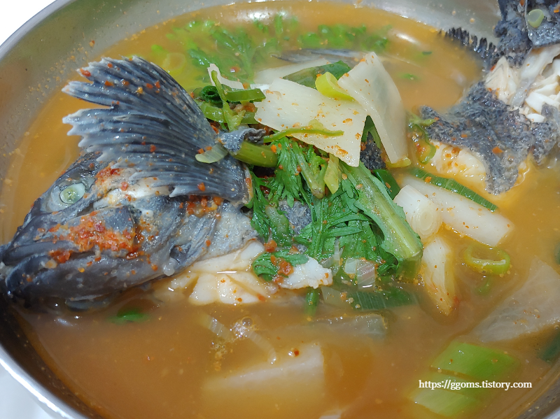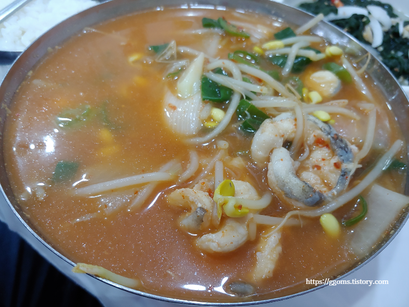 국물은 맵지 않고요. 우럭살은 도톰하니 부드럽네요. 무와 쑥갓이 들어가 시원한 맛과 더불어 많이 비리진 않아요. 제입에 아주 맞지는 않지만 자극적이지 않고 담백하게 먹을 수 있는 것 같아요.