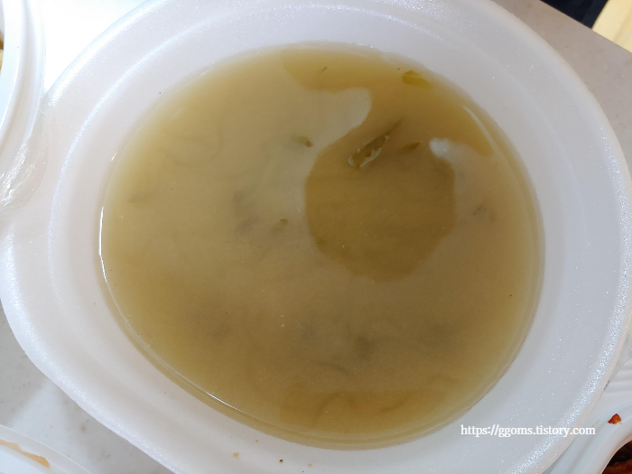 국을 동봉된 용기에 부었습니다. 국 맛은 무난한 맛이에요.