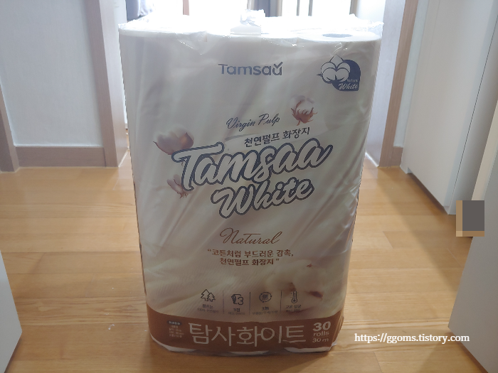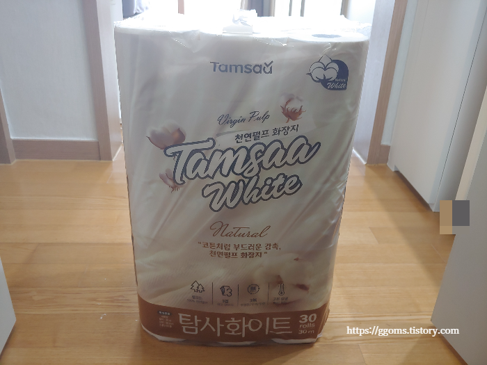 길이는 30m, 3겹 30롤 화장지예요.