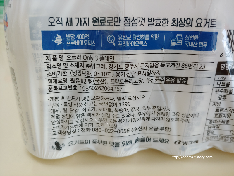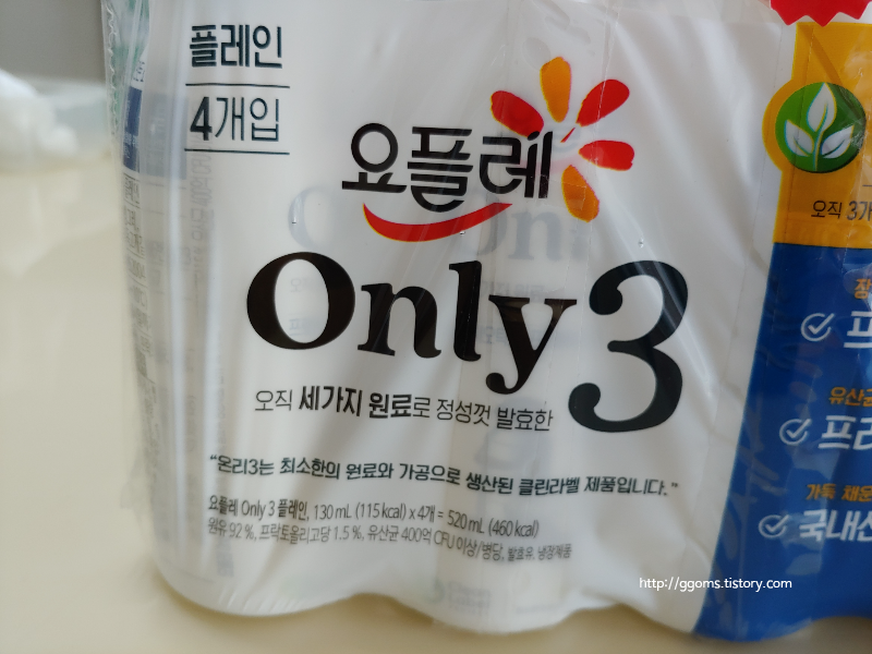 요플레 Only3 플레인 요구르트 이 제품은 클린라벨 제품인데요. 클란라벨이란 최소한의 가공으로 생산된 식품을 뜻하는데요. 상품명 온리3가 오직 세 가지 원료만을 사용했다는 뜻이래요.