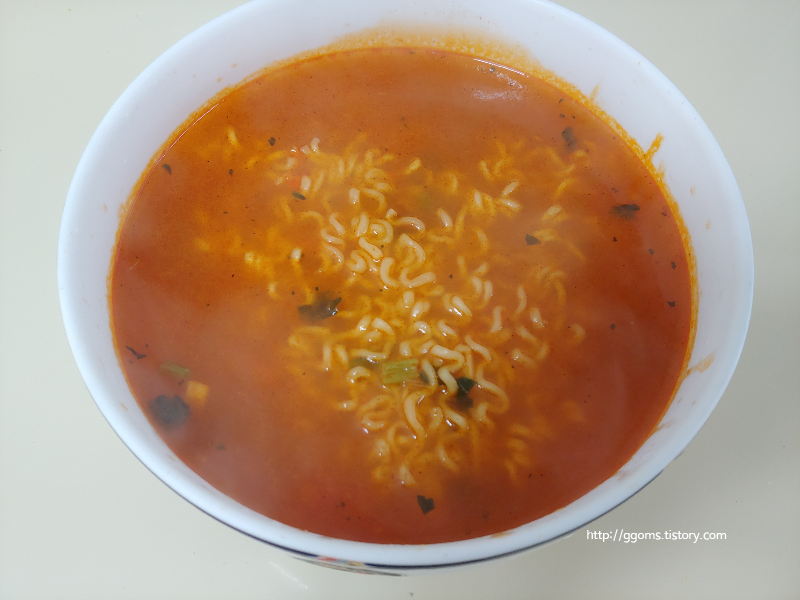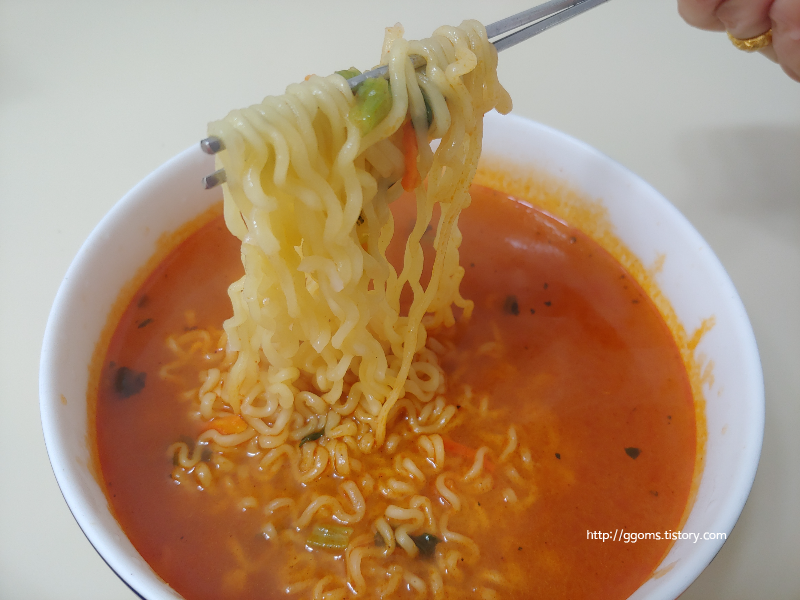 일단 맵찔이인 저에게는 맞지 않는 라면인 듯한데 계란을 넣어 끓여 먹으면 매운맛이 좀 중화되고 괜찮지 않을까 생각됩니다.