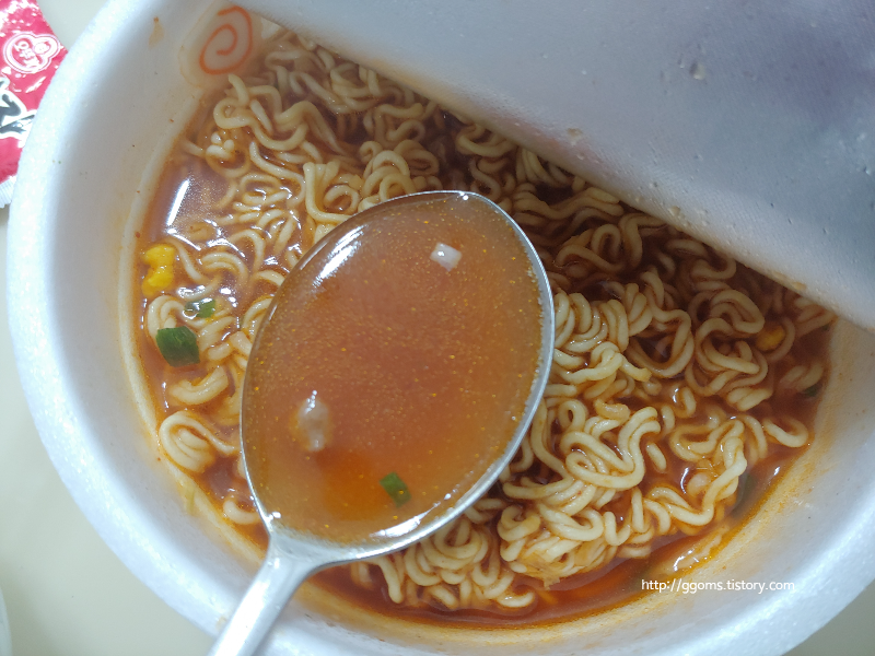 저는 특히 컵라면의 경우 퍼진 걸 별로 좋아하지 않기에 3분이나 기다리지 않고 덜 익었을 때 먹기 시작합니다.