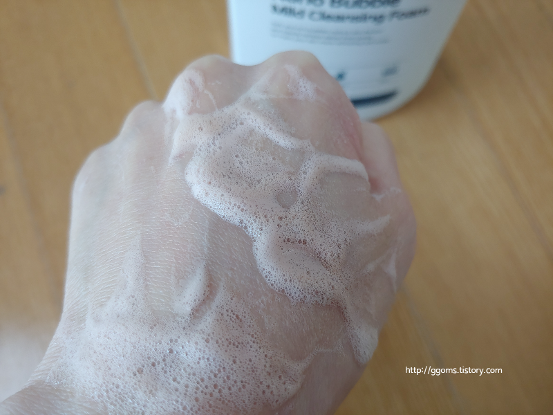 펌핑해 보았습니다. 바로 풍성한 거품이 되어 나옵니다. 그래서 문질러 거품을 낼 필요 없지요. 그대로 얼굴을 마사지하 듯 문질러 미지근한 물에 헹구면 되는데요.