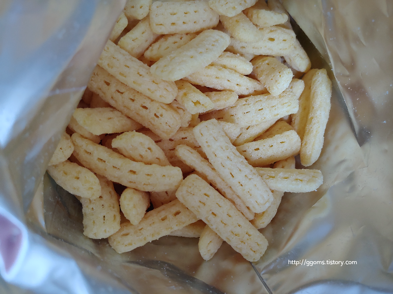 식감은 바삭, 맛은 옥수수 버터구이 맛으로 고소한 맛도 나고 단맛도 나고 그리고 짠맛도 납니다. 시즈닝 맛이 나면서 제법 짭짤한 편이에요.