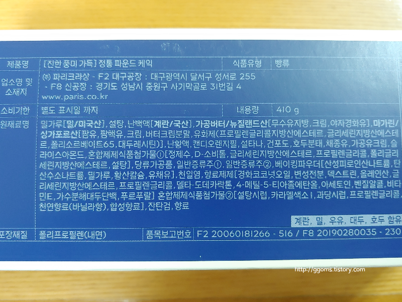 파리바게트 정통 파운드 케이크 원재료명이고요.