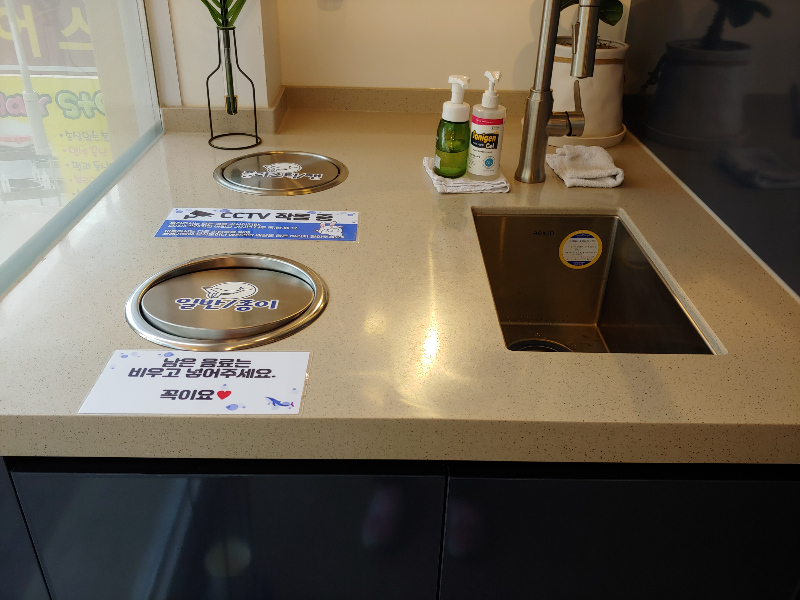 그리고 반대쪽 벽면에 남은 음료와 컵 등을 버릴 수 있는 공간이 있고요.